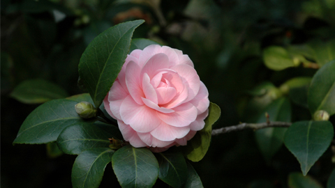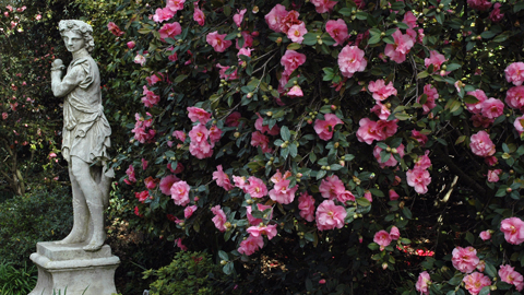 Camellias are native to China and Japan and made their way to the Western world in the 18th century. The descendents of some of the earliest camellias to arrive in England are represented here, along with many species camellias and modern hybrids. "What makes this collection stand out is not only its size and completeness, but also the number of rare and historic cultivars it contains," says David MacLaren, Curator of Asian Gardens at The Huntington. According to MacLaren, the most historic individual plant in the collection is C. japonica 'California,' which is believed to be the oldest surviving camellia on record in Southern California.