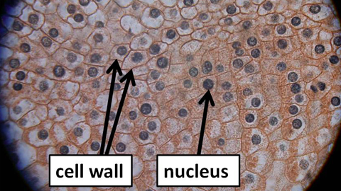 In Botany I, the students learn about the basic components of the plant cell. The next slide on the screen showed a longitudinal section of an onion root tip. The cells are interconnected by strong cell walls, looking almost like the brickwork on a building. The students can clearly see two important cell structures: the cell wall and the nucleus. The students took notes and asked questions about new vocabulary terms. This information will reappear on the test that will be administered at the end of the third week of class.