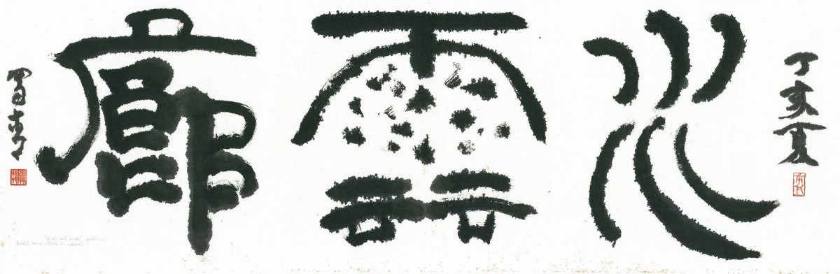 Lo Ch’ing 羅青 [Lo Ch’ing-che 羅青哲] (born 1948, Qingdao, Shandong Province, China; active Taiwan). Corridor of Water and Clouds 水雲廊, 2007. Handscroll, ink on paper; calligraphy written in seal script. Image: 16 3/4 x 36 1/4 in. (42.5 x 92 cm); Mount: 16 x 52 in. (40.6 x 133 cm); Roller: 1 3/4 in. (4.5 cm). The Huntington Library, Art Museum, and Botanical Gardens.