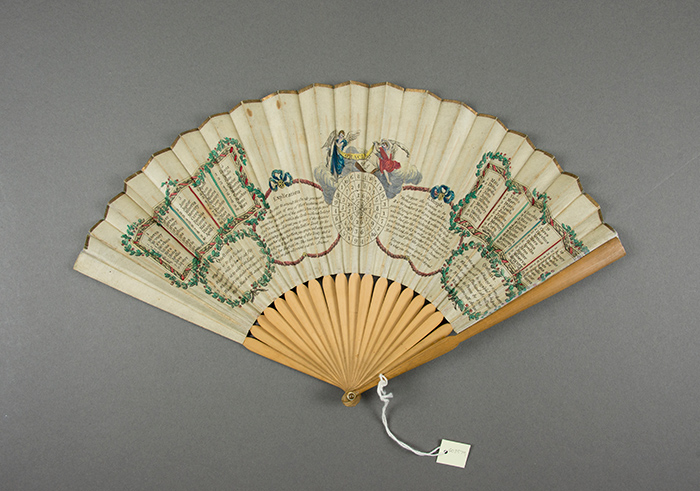 Printed fans had become popular fashion accessories in Europe by the late 18th century, being used for everything from keeping track of dance steps to celebrating historic milestones. This English one, probably printed in the 1790s, sports two winged figures holding a banner emblazoned with the word “Oracle” hovering above a book of fate. It’s a so-called fortune-telling fan. Could a painted piece of paper answer life’s most burning questions? Whether you’d be rich—or lucky in love?
