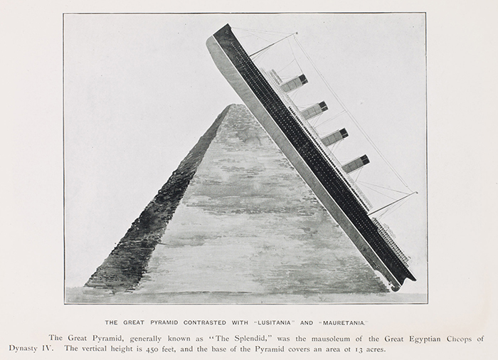 Travel brochures like this one (ca. 1907) vaunted the grandness of ocean liners such as the "Lusitania." The Huntington Library, Art Collections, and Botanical Gardens.