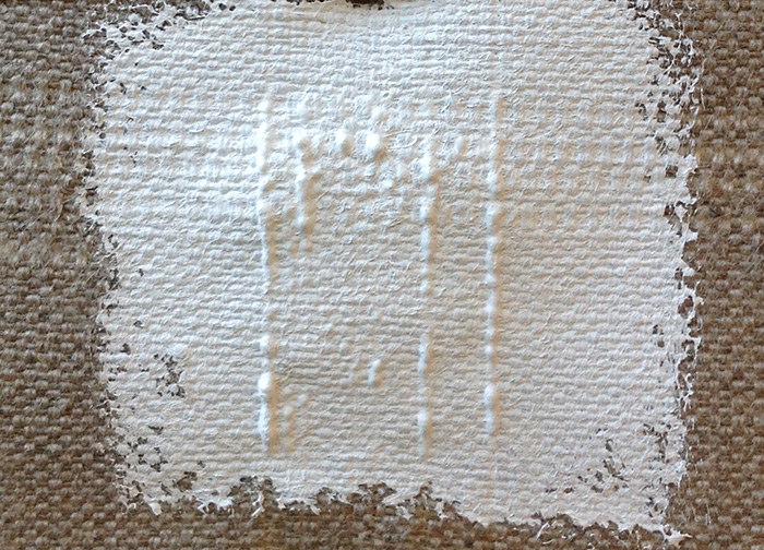To illustrate her theory of a double-sided painting, the conservator applied white paint to the back of this canvas sample. The resulting texture gives credence to her theory.
