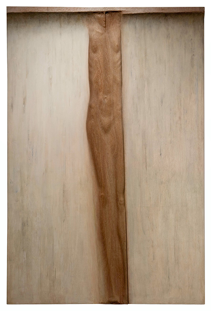 James Hueter, American (b. 1925), Thin Figure Rising, 1969, oil on wood, 72 x 48 in. (182.9 x 121.9 cm.), carved and painted wood panel. The Huntington Library, Art Collections, and Botanical Gardens. Gift of the artist. © James Hueter / Schenck Images. James Hueter, American (b. 1925), Thin Figure Rising, 1969, oil on wood, 72 x 48 in. (182.9 x 121.9 cm.), carved and painted wood panel. The Huntington Library, Art Collections, and Botanical Gardens. Gift of the artist. © James Hueter / Schenck Images.