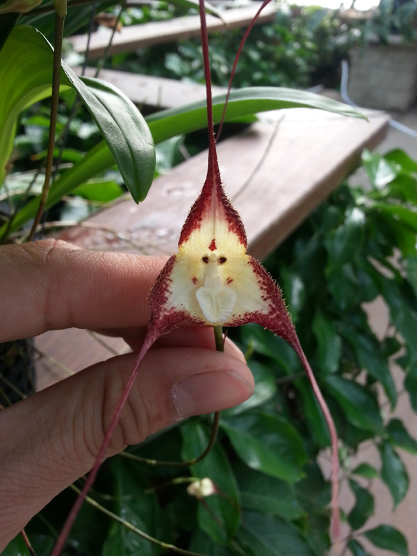 While at The Fascination of Orchids Show in Santa Ana last month, Ecuagenera (a nursery that exports plants from Ecuador) was selling various species that are a part of the Dracula family. The Huntington was able to obtain 10 different types of species, including psittacina, gigas, cordobae, simia, cordobae, hirsuta, vampira, diana, gaskelliana, and gaskelliana. Dracula vampira is a fantastic one to have, especially with Halloween coming up. It looks exactly like a monkey but with the addition of vampire-like colors of black, green, and orange. Dracula venefica is another notable species because of it close resemblance to orangutans.