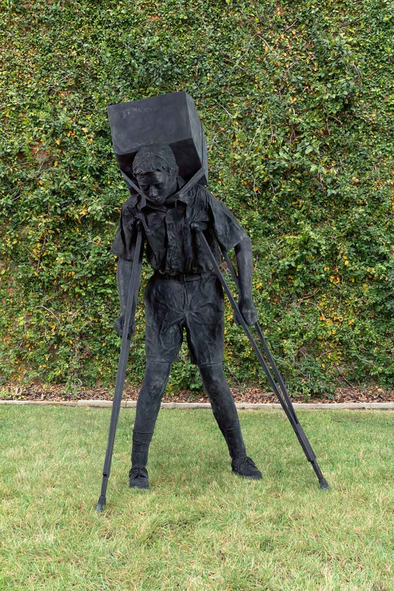 Born in Cuba and raised in Spain and Puerto Rico, Martínez Celaya has said his work concerns the “existential condition of belonging.” The Gambler depicts a life-size boy on crutches carrying a house on his shoulders. He carries the idea of home and identity with him, resolved to bring it with him into the future. The boy’s clothing and home are non-specific in terms of space and time, and hence universal.
