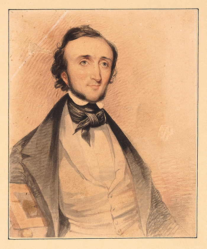 A.C. Smith’s portrait of Edgar Allan Poe, 1843 or 1844, watercolor on paper. The Huntington Library, Art Collections, and Botanical Gardens.