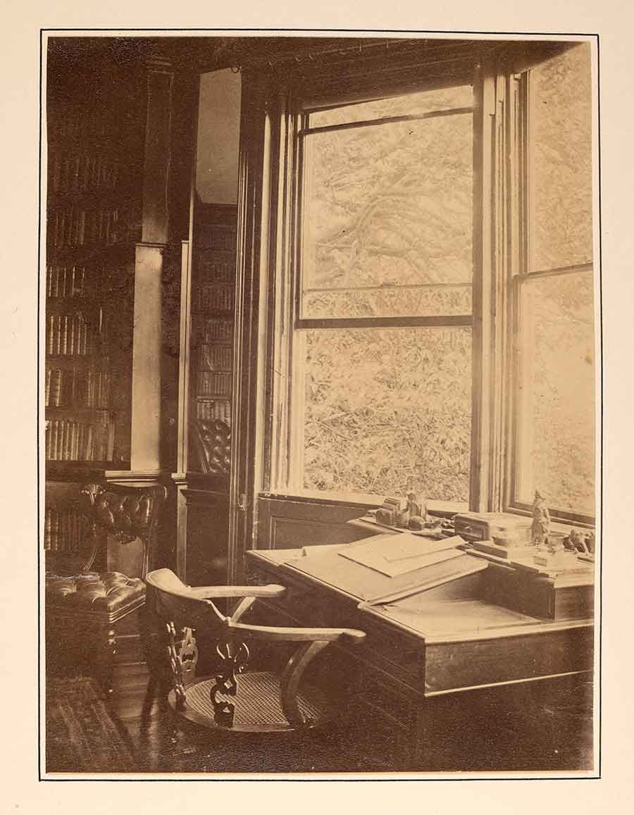 The photograph of this chalet room adds to the difficulty of “interpreting” the chalet: in sepia tones, the distinction between the mirrors and the windows, covered in lined curtains, is unclear, and the perspective does not give us a sense of the view from Dickens’s desk in the way the study photograph does. That the mirrors should “reflect and refract truly” was important to him. To Annie Fields, he wrote: