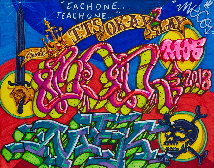 Mario Ybarra Jr., It’s Okay 2 Slay, 2018. Marker and acrylic paint on paper, 11 x 14 in. Courtesy of the artist.