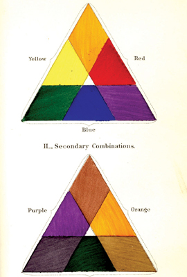 Triangles showing the primary and secondary colors, from Robert Ridgway's Nomenclature of Colors for Naturalists (1886). Copyright Huntington Library, Art Collections, and Botanical Gardens.