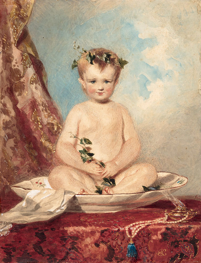 Alfred Edward Chalon, Infant Bacchus, watercolor, ca. 1850, 21.1 x 18.4 cm. (59.55.201). Gilbert Davis Collection. The Huntington Library, Art Collections, and Botanical Gardens.