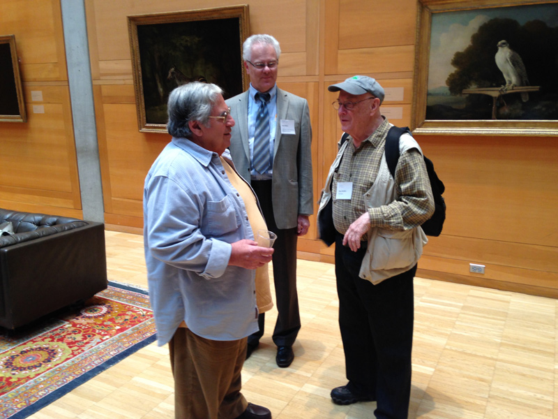 Photographers Paul Caponigro (left) and Bruce Davidson (right) meet for the first time at a new exhibition of their work at the Yale Center for British Art. Exhibition co-curator Scott Wilcox (center) says of the pair: “Davidson is a photojournalist and exponent of gritty street photography while Caponigro practices a pure, formalist approach to photographing landscape. If Davidson seeks to capture a specific moment in time, Caponigro dwells on the timeless phenomena of nature in relation to the enduring man-made structures of antiquity, such as Stonehenge.”